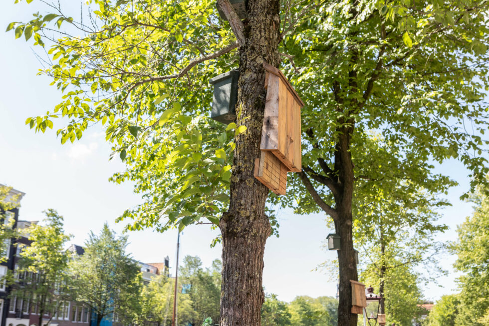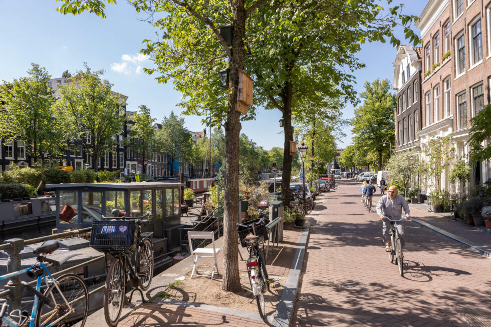 Bij de Prinsengracht zien we geen versterkingsconstructie. Daar is de kademuur bijna onzichtbaar versterkt met een nieuwe methode: groutinjectiepalen. Maar ook bij deze versterkte kade proberen we de biodiversiteit te bevorderen. In de bomen hangen nestkasten voor kool- en pimpelmezen en vleermuiskasten.