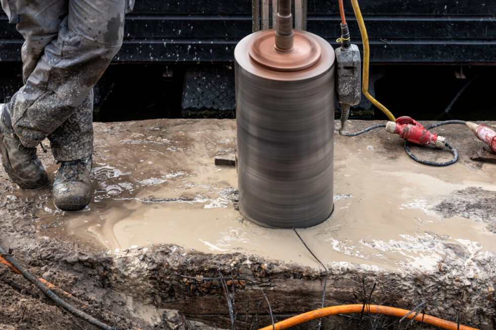 Bij groutinjectiepalen boren we gaten door de kademuur en funderingsvloer, tussen de bestaande palen. Vervolgens schroeven we trillingsvrij stalen buizen door de gaten tot op de 2e zandlaag. Door de schroefpunten van de buizen spuiten we grout, een mengsel van water en cement. Allereerst als smeermiddel om de gewenste diepte te bereiken. En ook om de nieuwe buis met een groutklomp rond de schroefpunt in de zandlaag te verankeren.