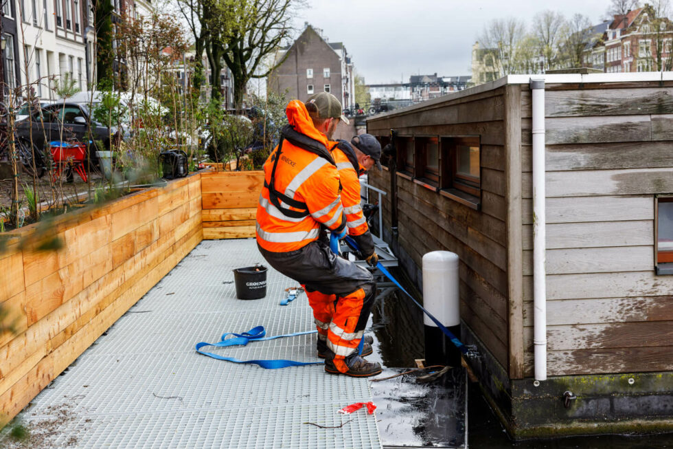 Hier hebben we eerder al 157 meter van de 207 meter versterkt met damwanden. “Maar voor de laatste 50 meter was dat niet mogelijk”, vertelt projectleider Marleen Cervelli. “Dat komt doordat hier grote woonschepen liggen die bij het plaatsen van een damwand te ver uit de kade in het vaarwater zouden steken. De schepen zouden daardoor niet meer zelfstandig in en uit kunnen varen. Daarom hebben we besloten om hiervoor een alternatieve versterkingsmethode uit te denken.”