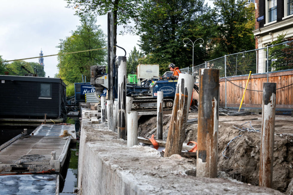 We hebben een nieuwe techniek om kademuren te renoveren: groutinjectiepalen. Een methode die zeker niet bij alle slechte kademuren toepasbaar is, maar wel veel voordelen biedt. Bijvoorbeeld dat je er niets van ziet wanneer het werk klaar is. Dit najaar passen we het toe op een stuk kade aan de Waalseilandsgracht.