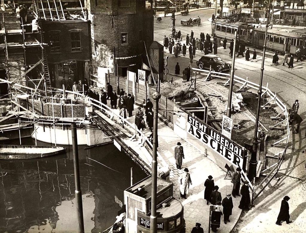 Maar de demping van de Nieuwezijds Voorburgwal in 1884 was een ander verhaal. De bedoeling was om deze schilderachtige gracht te veranderen in een brede boulevard van Parijse allure. Helaas werd het een zielloze, straatstenen vlakte, waar de bestaande verhouding tussen de hoogte van de bebouwing en de wateroppervlakte door de komst van de verkeersweg verbroken werd.